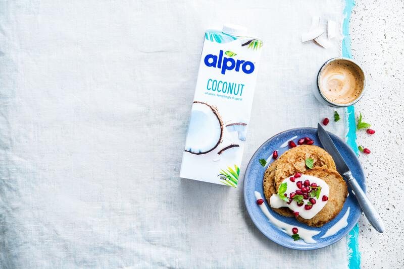 Whizz the oats in a high speed blender or food processor until they’re a fine powder. Add the baking powder, whizz together. Mix the Protein Soya Drink with the agave nectar and vanilla, then whizz with the oats and baking powder to make a batter.