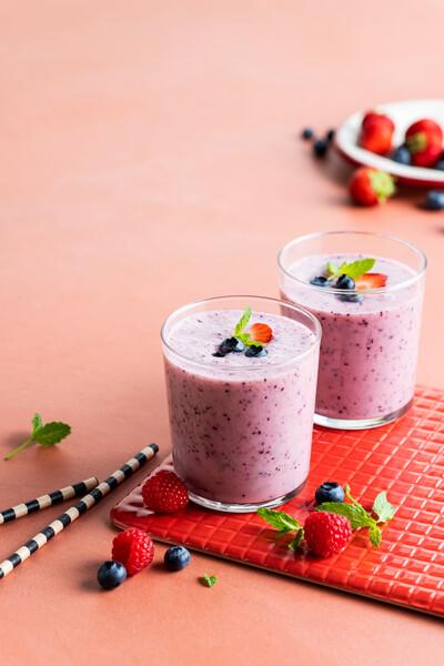 Add the Alpro Soya Original Drink and whizz until smooth and dramatically purple.