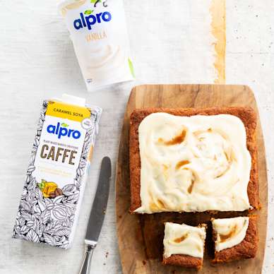 Un gâteau de fête traditionnel rendu encore plus délicieux avec une alternative végétale au yaourt à la vanille d'Alpro.