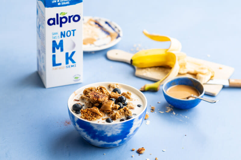 Doe de haverchunks in een kom en overgiet ze met Alpro This is Not M*lk. Werk af met pindakaas en je favoriete bessen. Geen betere manier om de dag te starten dan met dit ontbijt!