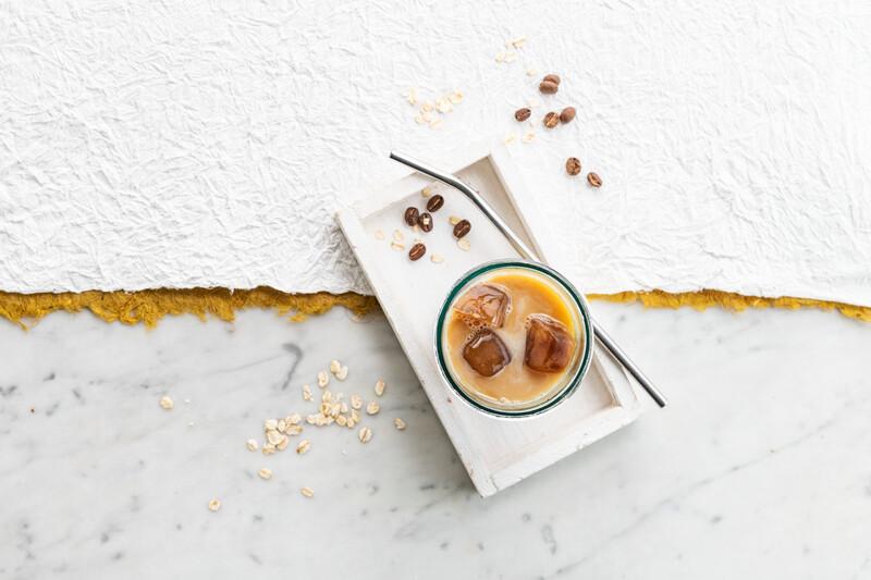 Ein glühender, goldener Winterwärmer mit dem Alpro Barista Haferdrink