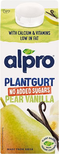 Sprudlende FRUGTSMAG! Forkæl dig selv med den NATURLIGE SØDME fra læker pære og dejlig vanilje, INGEN TILSATTE SUKKERSTOFFER eller SØDESTOFFER er nødvendige. Utroligt smagsfuld! Fyldt med planteprotein, LAVT INDHOLD AF FEDT og en KILDE TIL CALCIUM og VITAMINER. Med YOGHURTBACTERIER. Dejligt cremet takket være den NATURLIGE GÆRINGSproces. 0% AFSKOVNING. Vores soja er PROTERRA-certificeret, en certificering hvor BEVARELSEN AF REGNSKOV er afgørende. Det betyder, at vores soja ikke kan komme fra afskovningsområder.