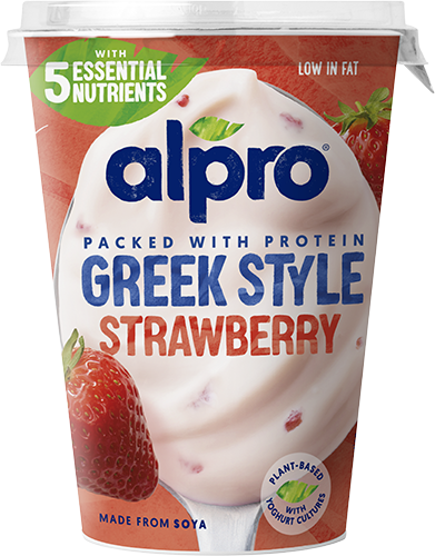vatten/vann/vand, skalade/afskallede sojabönor/soyabønner (13,9%), jordgubb/jordbærmix (9,2%) (frukt/frugt (5%), juice från/fra koncentrat (4,2%)), socker/sukker, stabiliseringsmedel/stabilisator (pektiner), surhetsreglerande medel/midler (citronsyra, natriumcitrater, äppelsyra/eple/æblesyre), kalcium, naturlig arom/aroma, rödbets/rødbedekoncentrat, svart/sort morots/gulrot/gulerodskoncentrat, havssalt, antioxidationsmedel/antioxidanter (tokoferolrika extrakt/tocopherolrig ekstrakt, askorbinsyraestrar av fettsyror/ascorbinsyreestere af fedtsyrer), vitaminer B2, B12, D2, yoghurtkultur (S. thermophilus, L. bulgaricus).