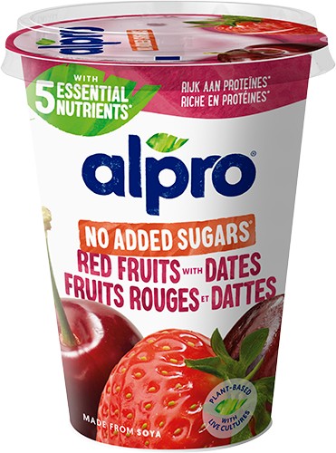 Alpro punaste puuviljade ning datlitega on meie uus sojatoode, mis on hea alternatiiv jogurtile. Tänu paljudele puuviljadele ei ole juurde lisatud suhkruid. Maitseb imeliselt puuviljaselt ning tänu datlitele on sellel mahe ja loomulik magusus.