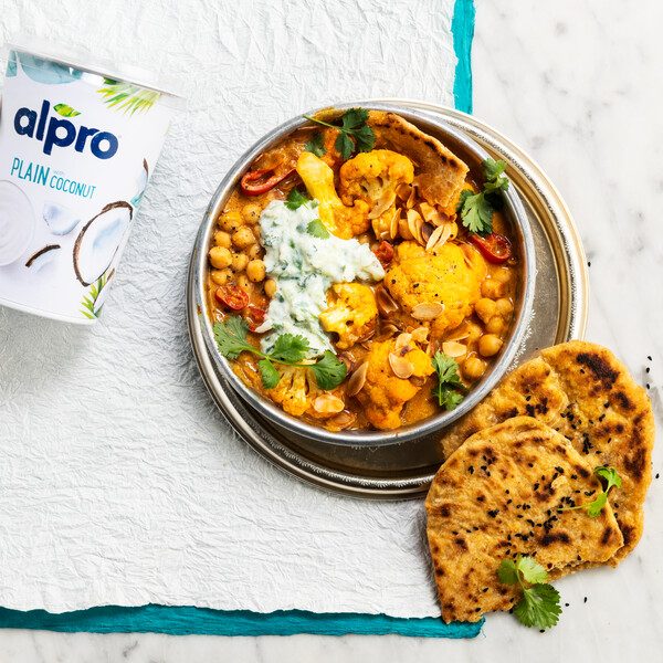 Cauliflower and Chickpea Curry Served with Raita