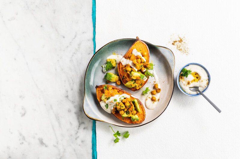Oven-baked Sweet Potato with Spicy Chickpeas