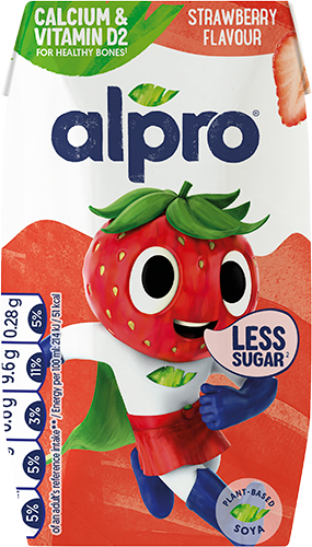 Have we just created a perfect kids’ plant-based drink? Our silky smooth soya base packed full of superhero strawberry taste, with 30% less sugar* than similar products on the shelves. Plus added calcium* and vitamin D2 for growing bones. Sounds pretty perfect to us!