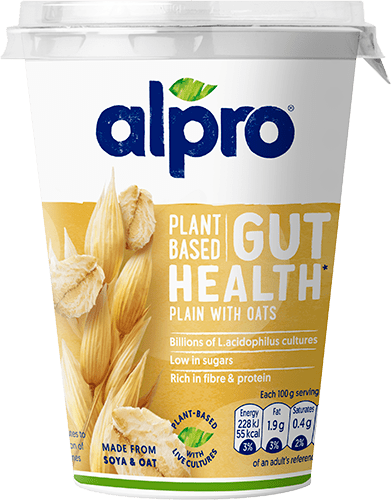 Enjoy Alpro Gut Health* plain with oats on its own, in a smoothie, or get a little bit fruity by adding a sprinkling of berries or bananas. It comes in a handy 400g pot you can dip into, spoon from and enjoy any way you want: less waste, more love for your gut*