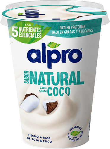 base de soja (agua, habas de soja descascarilladas (10,4%)), leche de coco (4,3%) (crema de coco, agua), azúcar, citrato tricálcico, correctores de acidez (citratos de sodio, ácido cítrico), estabilizante (pectinas), aroma natural, sal marina, vitaminas (B12, D), antioxidantes (extracto rico en tocoferoles, ésteres ácidos grasos de ácido ascórbico), fermentos (S. thermophilus, L. bulgaricus).