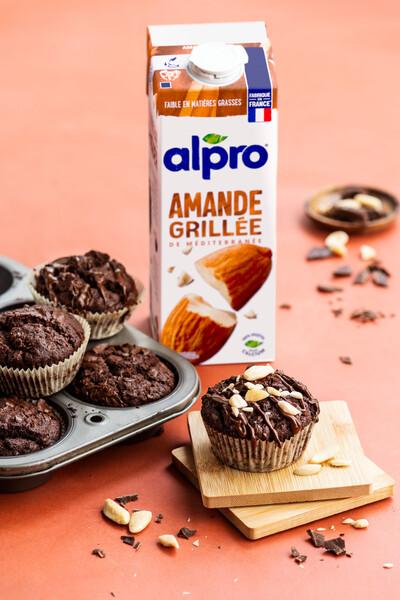 Dans un saladier, mélangez la boisson au Soja saveur Chocolat alpro, la farine, la levure chimique, le sucre de coco, les pépites de chocolat et l'huile. Mélangez jusqu'à obtenir une pâte lisse. Ajoutez la pâte au plat de cuisson, les framboises remonteront à la surface, ce n'est pas un problème.