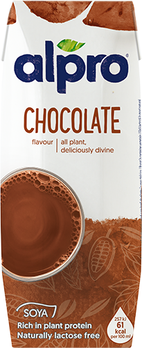 Svaka čast! Odlučili ste se za zdrav način života, sada samo trebate nastaviti. Ovdje smo da to učinimo ukusno lakim s našim Alpro visokoproteinskim napitkom s okusom čokolade. Soja je nevjerojatan izvor biljnih proteina koji sadrži svih devet esencijalnih aminokiselina. Koristimo samo odgovorno uzgojena zrna soje. Kao što naziv sugerira, ovaj napitak ozbiljno je čokoladan. Daj pet! Možeš ti to! BAŠ DOBRO