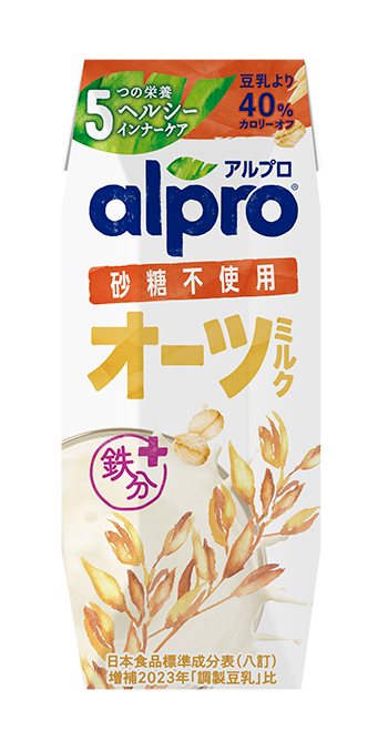 植物には素材のうまみや甘味がたっぷり!アルプロの砂糖不使用は、オーツ麦の本来の甘さを引き出しておいしいオーツミルクに仕上げたよ。