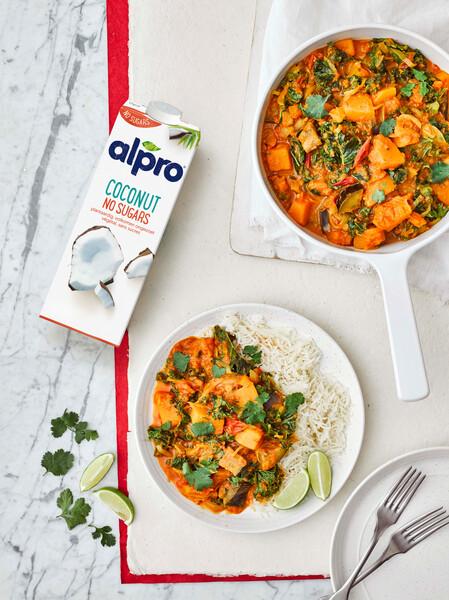 Verhit in een grote, diepe pan een flinke lepel Alpro Bakken en Braden op middelhoog vuur. Voeg de uien en prei toe en bak zachtjes voor 10 minuten, roer regelmatig om. Voeg de knoflook, bloem en aardappelen toe en bak 3-4 minuten al roerend tot ze doorkoken en de bloem de groenten bedekt.