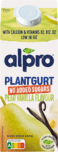 Sprudlende fruktsmak! Nyt den NATURLIGE SØTSMAKEN av deilig pære og deilig vanilje, helt uten tilsatt sukker eller søtningsmidler. Utrolig god smak! Fullpakket med planteprotein, LAVT FETT og en KILDE TIL KALCIUM og VITAMINER. Med YOGHURT BACTERIA. Deilig kremet takket være den NATURLIGE GJÆRINGSPROSESSEN. 0 % OST. Soyaen vår er PROTERRA-sertifisert, en sertifisering der bevaring av regnskogen er avgjørende. Dette betyr at soyaen vår ikke kan komme fra avskogingsområder.