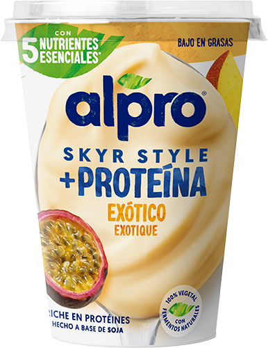 base de soja (81,3%) (água, grãos de soja descascados (13,9%)), açúcar, manga (5,1%), sumo de maracujá a partir de concentrado (4,6%), estabilizador (pectinas), reguladores de acidez (citratos de sódio, ácido cítrico), cálcio (fosfato tricálcico), sal marinho, aroma, antioxidantes (extrato rico em tocoferóis, ésteres de ácidos gordos do ácido ascórbico), vitaminas (B12, B2, D2), fermentos vivos de iogurte (S. thermophilus, L. bulgaricus).