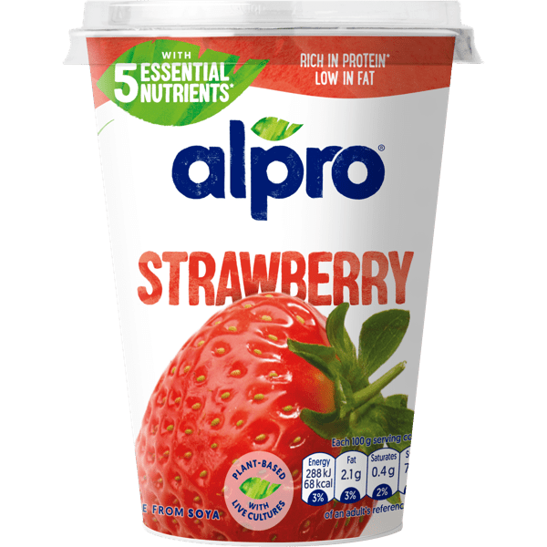 Desfruta do sabor a morango durante todo o ano com Alpro Morango: pedaços de fruta envolvidos numa textura deliciosamente cremosa! Delicia-te!