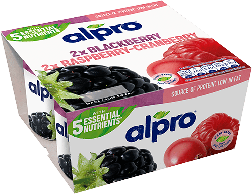Framboesas doces e arandos picantes? Ou amoras doces e sumarentas? Não precisas de escolher! Com Alpro Framboesa- Arando & Amora tens pedaços de fruta delicadamente envolvidos para um sabor totalmente frutado.